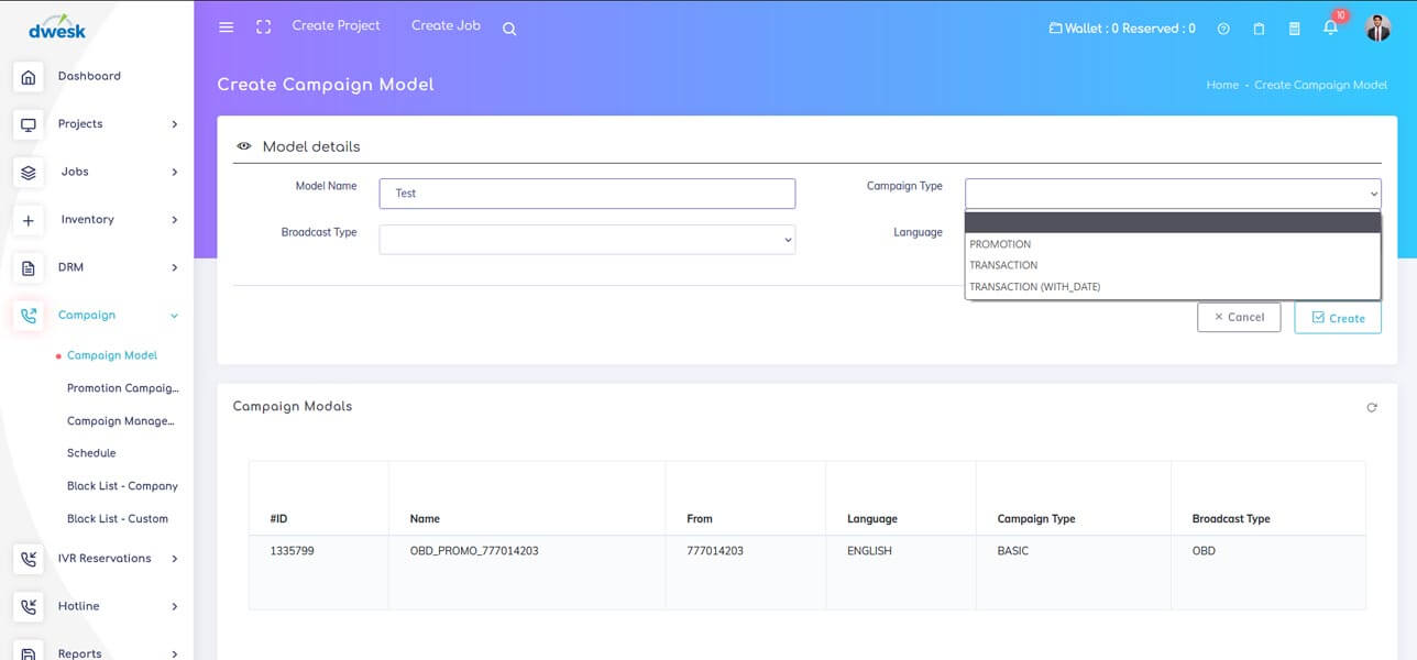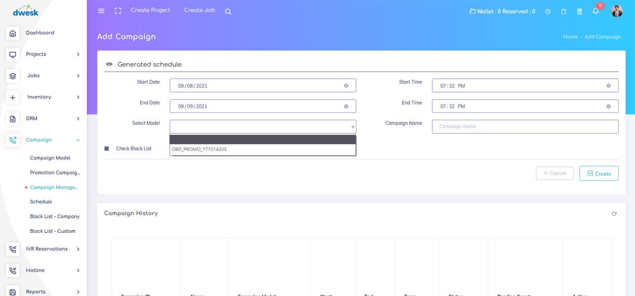 Dzesk Campaign Manager is a free CRM that comes with SMS, OBD calls, MMS Video, MMS audio and MMS picture and Reservation’s capabilities. You can send bulk SMS, MMS and OBD marketing automation are available on Dzesk campaign Manager. Campaign management system enables to launch, schedule, quickly coordinate, and monitor campaigns. The campaign execution now can happen in just a few hours. As a result, the lead time (the amount of time between process initiation and completion) for campaign rollouts is significantly decreased.